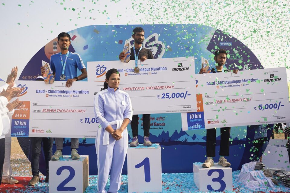 છોટાઉદેપુર | ૧૧ ફેબ્રુઆરી ૨૦૨૬ — છોટાઉદેપુર જિલ્લાના વહીવટી તંત્ર દ્વારા તા. 8 ફેબ્રુઆરી 2026ના રોજ બોડેલી ખાતે આયોજિત દૌડ મેરેથોન 2026નું ભવ્ય અને સુચારુ આયોજન કરવામાં આવ્યું હતું. આ મેરેથોન છોટાઉદેપુર જિલ્લાના ઇતિહાસમાં પ્રથમ વખત આયોજિત થતી મેરેથોન હતી, જેમાં 15 હાજરથી પણ વધુ દોડવીરોએ ઉત્સાહપૂર્વક ભાગ લીધો હતો. છોટાઉદેપુર જિલ્લાની જનવિરાસત, અદ્ધુત પ્રાકૃતિક સુંદરતા, સમૃદ્ધુ સ્થાનીક કલા અને સર્વાંગી જિલ્લા વિકાસને ભારતની વિકાસયાત્રાને જોડતી અનોખી દૌડ છોટાઉદેપુરના બોડેલી મેરેથોન ગ્રાઉન્ડથી શરૂ થઈ હતી.