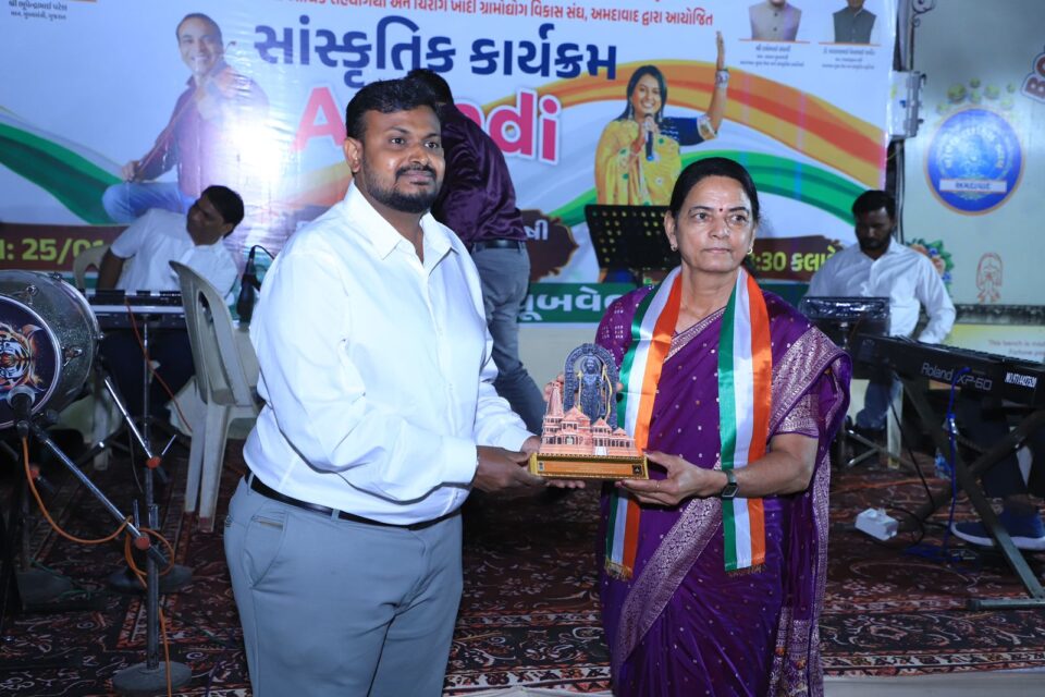 અમદાવાદ | ૨૫ જાન્યુઆરી ૨૦૨૬ — રમતગમત, યુવા અને સાંસ્કૃતિક પ્રવૃત્તિઓ વિભાગ, ગાંધીનગર તથા કમિશ્નરશ્રી યુવક સેવા અને સાંસ્કૃતિક પ્રવૃત્તિઓની કચેરી, ગાંધીનગરના આર્થિક સહયોગથી અને ચિરાગ ખાદી ગ્રામોદ્યોગ વિકાસ સંઘ, અમદાવાદના સંયુક્ત ઉપક્રમે બોપલ ખાતે “આઝાદી દિલ સે” શીર્ષક હેઠળ દેશભક્તિ ગીતો અને સાંસ્કૃતિક કાર્યક્રમનું ભવ્ય આયોજન કરવામાં આવ્યું.