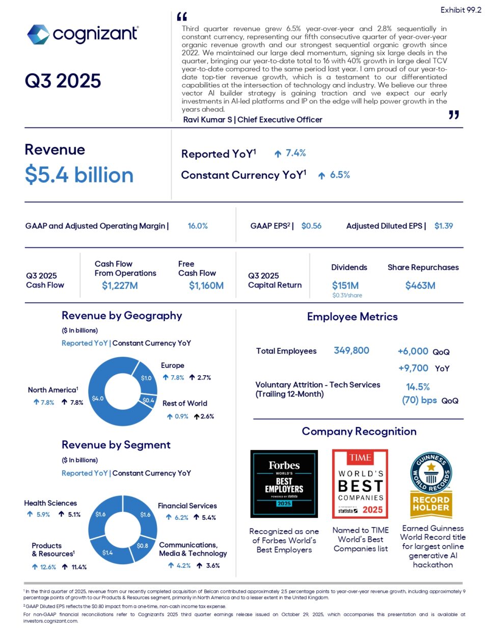 ટીનેક, એન.જે. | ૨૯મી ઓક્ટોબર ૨૦૨૫ / PRNewswire / – વિશ્વની અગ્રણી વ્યાવસાયિક સેવાઓ કંપનીઓમાંની એક, કોગ્નિઝન્ટ (નાસ્ડેક: સીટીએસએચ) એ આજે તેના ત્રીજા ક્વાર્ટર 2025 ના નાણાકીય પરિણામોની જાહેરાત કરી છે.