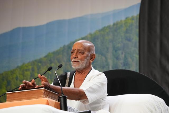 શરૂ કરતા બાપુએ જણાવ્યું કે મહાભારતમાં સાવિત્રી મંત્ર છે એમ રામચરિત માનસમાં મંગલ શબ્દ પ્રધાન છે.આ મંગલ શબ્દ રામચરિત માનસનો સાવિત્રી મંત્ર છે.વાણી અને વિનય જીવન માટે જરૂરી છે.વાણી બધા પાસે હોય,વિનય ક્યાંક-ક્યાંક ન પણ હોય! રામચરિત માનસ અને મહાભારતમાં માતૃશક્તિની ખૂબ જ ઈજ્જત કરી છે પરંતુ લોકો વગર વિચાર્યે એનો વિરોધ કરતા હોય છે.મહાભારતે પણ માતૃ શક્તિ અને નારી પાત્રોનું મહિમાગાન ખૂબ કર્યું છે. વિશ્વાસથી ભક્તિ,શ્રદ્ધાથી જ્ઞાન અને ભરોસાથી ભગવાન મળે છે.