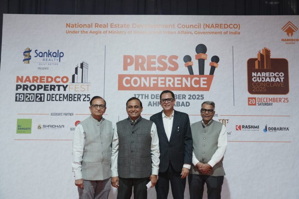 ગુજરાત, અમદાવાદ | ૧૭ ડિસેમ્બર ૨૦૨૫ — નેશનલ રિયલ એસ્ટેટ ડેવલપમેન્ટ કાઉન્સિલ (NAREDCO) ગુજરાત દ્વારા એસપી રિંગ રોડ ઉપર વૈશ્ણોદેવી સર્કલ પાસે તારીખ 19થી 21 ડિસેમ્બર દરમિયાન NAREDCO પ્રોપર્ટી ફેસ્ટ 2025નું આયોજન કરવામાં આવ્યું છે. આ ત્રણ-દિવસીય પ્રોપર્ટી એક્ઝિબિશનમાં અમદાવાદની અંદર અને આસપાસના વિસ્તારોના 500થી વધુ રેસિડેન્શિયલ, કમર્શિયલ, ઇન્ડસ્ટ્રિયલ, વિકેન્ડ હોમ્સ અને પ્લોટેડ ડેવલપમેન્ટ્સની રજૂઆત કરાશે. મહત્વપૂર્ણ છે કે તાજેતરમાં જ અમદાવાદ 2030 કોમનવેલ્થ ગેમ્સના હોસ્ટ સિટી તરીકે જાહેર કરાયું છે.