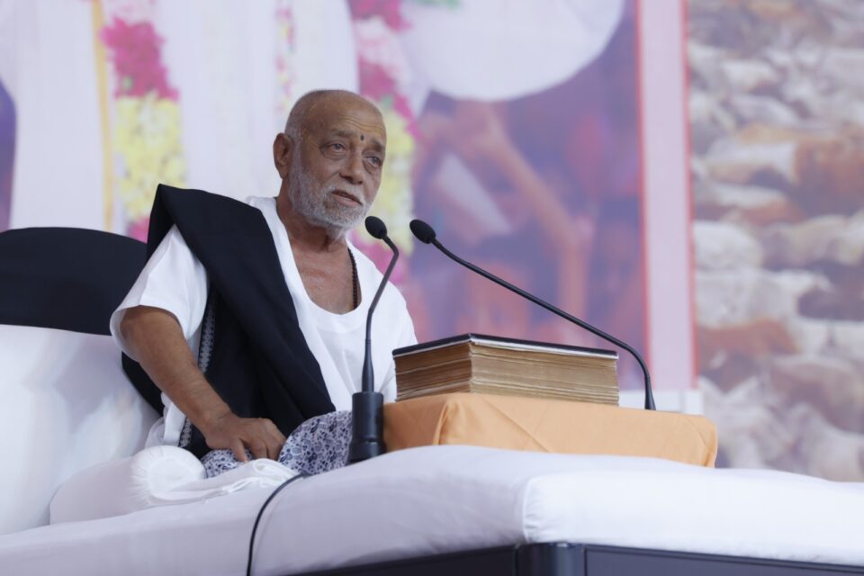 બાપુએ કહ્યું, ‘આરએસએસ પોતાની શતાબ્દી મનાવી રહી છે અને આ જ સંસ્થામાંથી એક વિદ્વાન વ્યક્તિત્વ આજે આપણી વચ્ચે આવ્યા છે. આવો, આપણે સૌ સાથે મળીને એક સૂરમાં આગળ વધીએ, જેમ આપણા પૂર્વજો એકસાથે દેવતાઓની ઉપાસના કરતા હતા.’