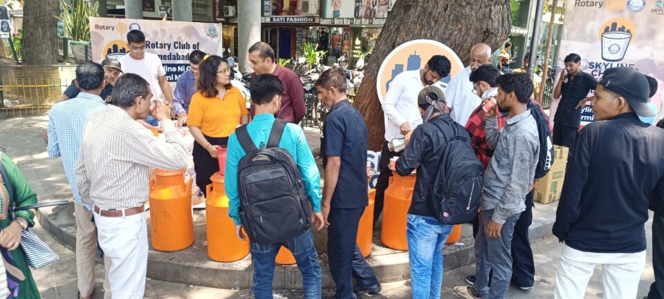 ગુજરાત, અમદાવાદ ૧૯ મે ૨૦૨૫: રોટરી ક્લબ ઓફ અમદાવાદ સ્કાયલાઈન તેનો કાર્યક્રમ, “સ્કાયલાઈન ની છાશ… ગરમીમાં હાશ…!!!” લઈને આવ્યું છે. આ એક તાજગીભર્યું પગલું છે જેનો હેતુ ઉનાળાની તીવ્ર ગરમીમાં રાહદારીઓને ઠંડક આપવાનો છે. “સ્કાયલાઈન છાશ પ્રોજેક્ટ” ના ભાગ રૂપે આ નિઃશુલ્ક છાસનું વિતરણ છેલ્લા 1 મહિનાથી રોજ બપોરે સી.જી. રોડ, નવરંગપુરા ખાતે કરવામાં આવે છે.