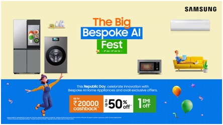 ગુરુગ્રામ, ભારત | ૧૩મી જાન્યુઆરી ૨૦૨૬ — ભારતની સૌથી વિશાળ કન્ઝ્યુમર ઈલેક્ટ્રોનિક્સ બ્રાન્ડ સેમસંગ દ્વારા ગ્રાહકોને તેમનાં ઘરોમાં ઈનોવેશન અને કનેક્ટેડ જીવન અપનાવવા મદદરૂપ થવા માટે તૈયાર કરાયેલી તેની રિપબ્લિક ડે ઉજવણી બિગ બીસ્પોક એઆઈ ફેસ્ટની ઘોષણા કરવામાં આવી છે. 8ની જાન્યુઆરી, 2026થી 31મી જાન્યઆરી, 2026 સુધી ચાલનારી ફેસ્ટિવ કેમ્પેઈન સેમસંગ બીસ્પોક એઆઈ ડિજિટલ એપ્લાયન્સીસમાં આકર્ષક ઓફર્સ, કેશબેક રિવોર્ડસ અને વોરન્ટી લાભો એકત્ર લાવવા સાથે પોંગલ અને મકર સંક્રાંતિ માટે વિશેષ ફેસ્ટિવ ઓફર્સ પણ વિસ્તારે છે.